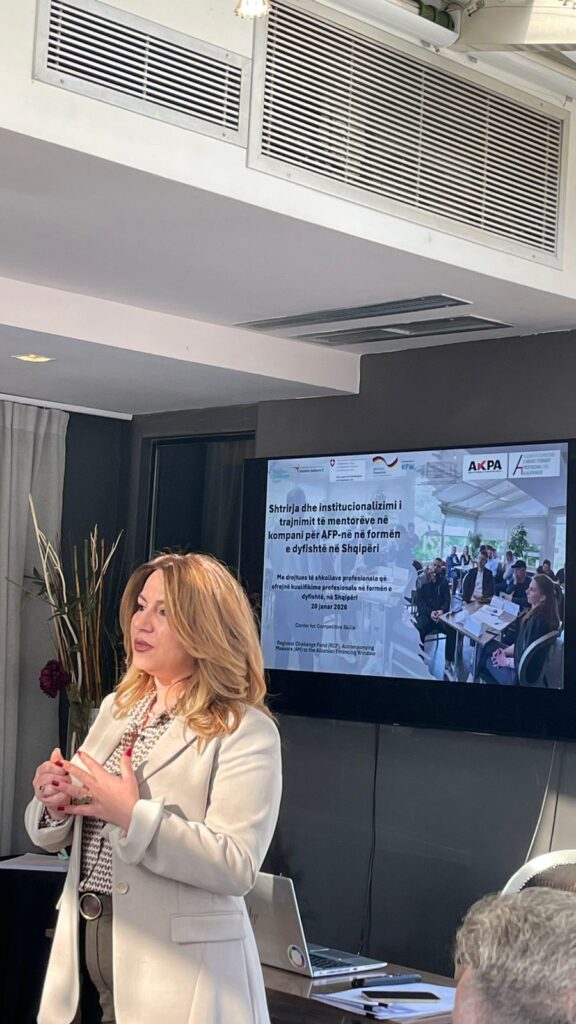 Në kuadër të përpjekjeve të vazhdueshme për të përmirësuar cilësinë dhe qëndrueshmërinë e arsimit dhe formimit profesional dual (AFP), projekti është duke zhvilluar dhe zbatuar një sistem të plotë për trajnimin, certifikimin dhe mbështetjen e mentorëve në kompani.